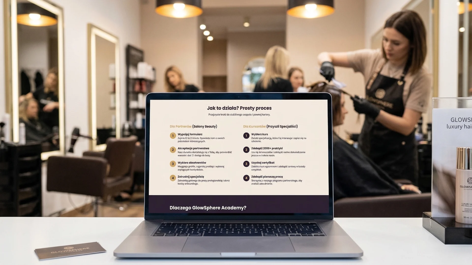 1-minutowy formularz (potrzeby rekrutacyjne) z auto-mailingiem do doradcy, generujący 450+ absolwentów rocznie dla salonów.